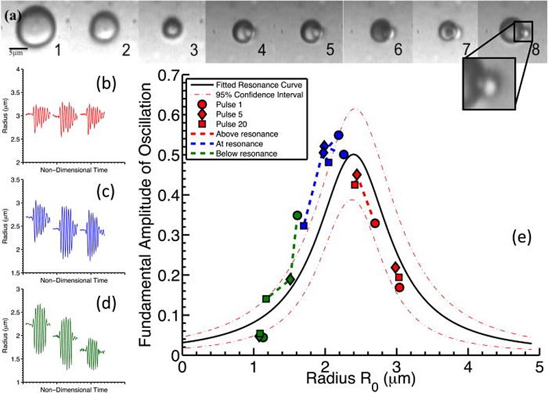 In an on-going collaboration with the Department of Experimental Echocardiography at Erasmus Medical Centre, Rotterdam, we designed ultra-high speed (~12MHz frame rates) optical experiments to measure the oscillations of microbubbles in near capillary sized tubes (~25μm).